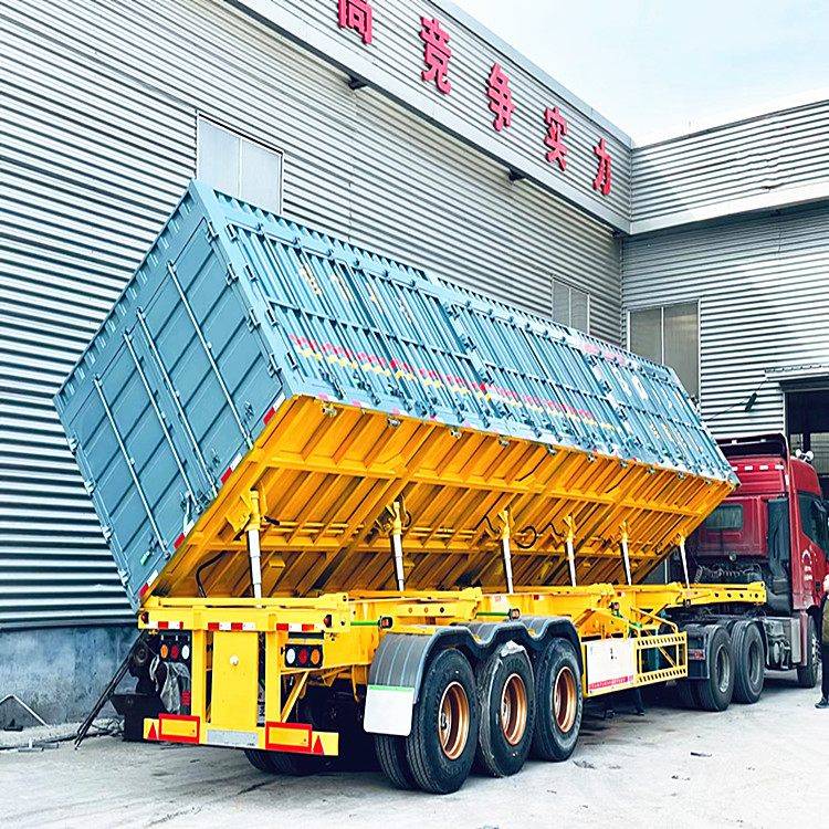 集装箱侧翻自卸半挂车 13米骨架高厢偏翻自卸车 标准公告挂牌上户