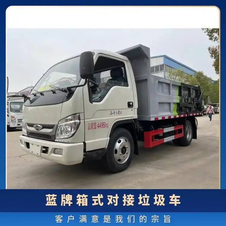 福田小卡之星蓝牌箱式对接垃圾车 不渗漏 双顶自卸 驾驶室内外操作