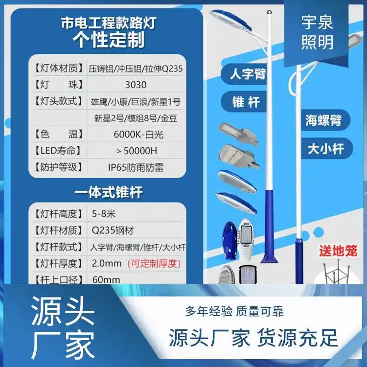 市电6米单臂双臂市政路灯杆 8米10米12米高低臂双头灯杆工程
