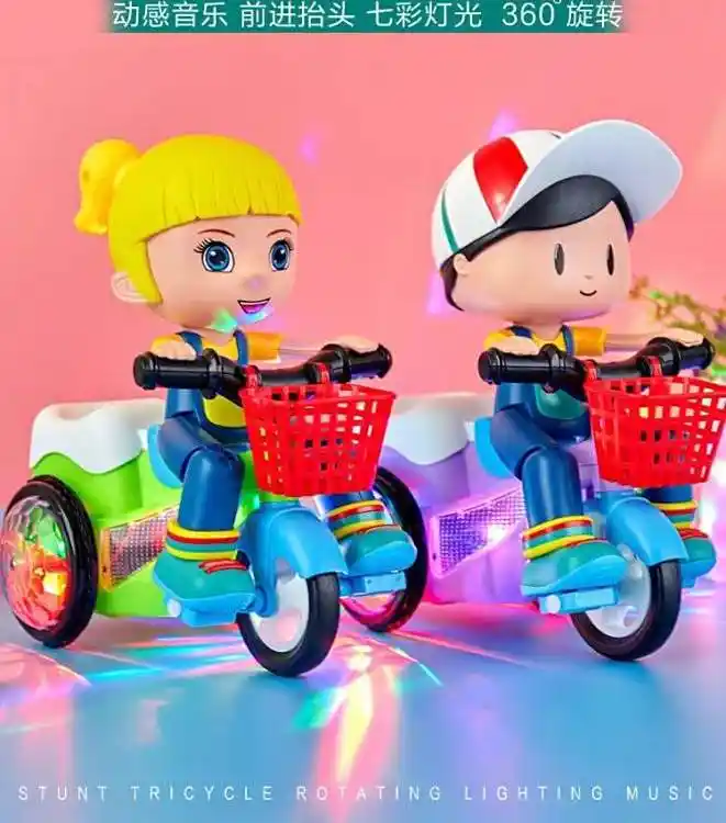 大头儿童电动玩具 旋转特技三轮车玩具 宝宝玩具车批发