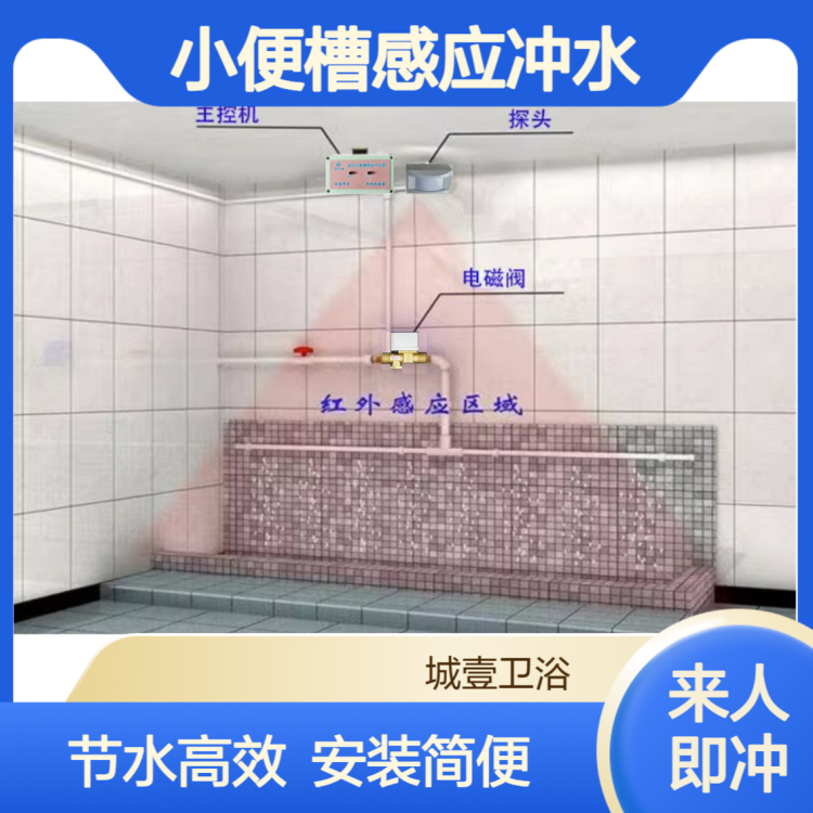 高速服务站男厕所不锈钢小便要槽自动感应冲水器沟槽节水器