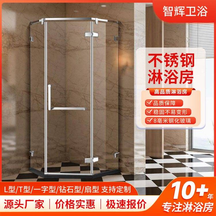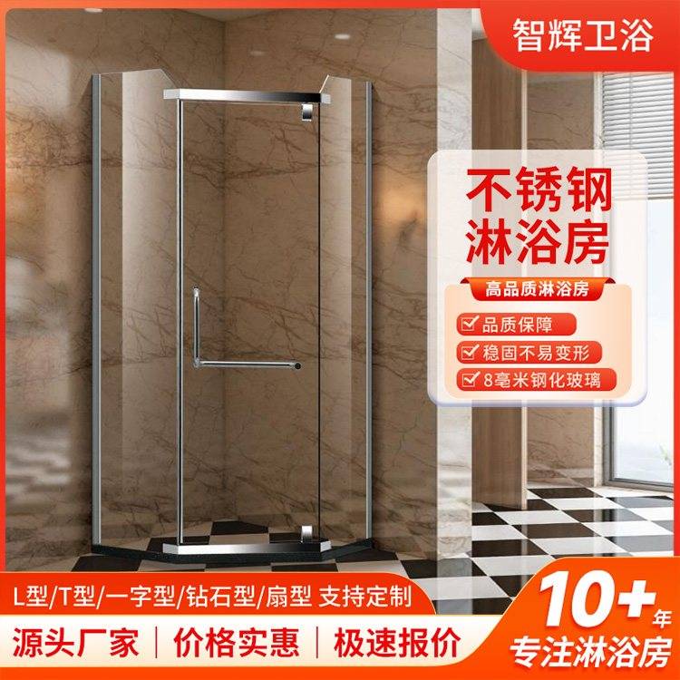 钢化玻璃淋浴房 卫生间沐浴房 不锈钢钻石型平开门 非标定制