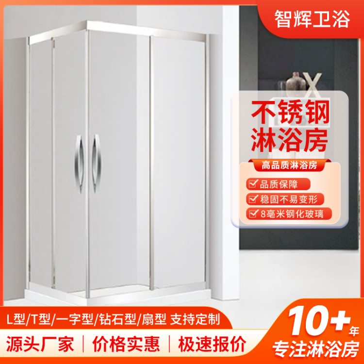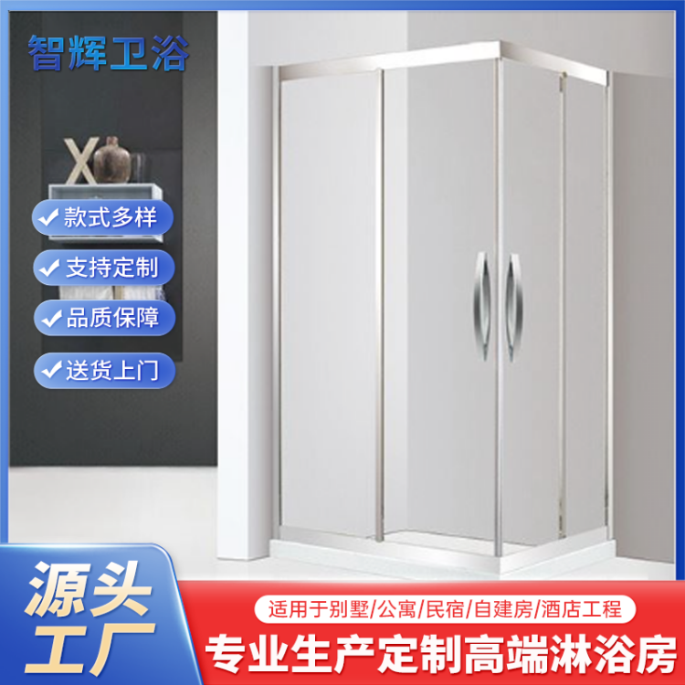 智辉 厂家定制方型淋浴房酒店工程L型平开门8mm钢化玻璃浴屏