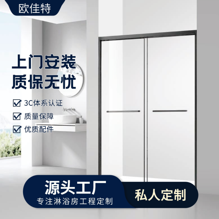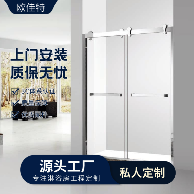 钢化玻璃淋浴房一字双活动浴室玻璃隔断屏风可定制各种尺寸