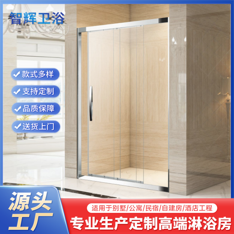 智辉 一固双移门不锈钢淋浴房屏风 酒店卫生间干湿分离隔断定制