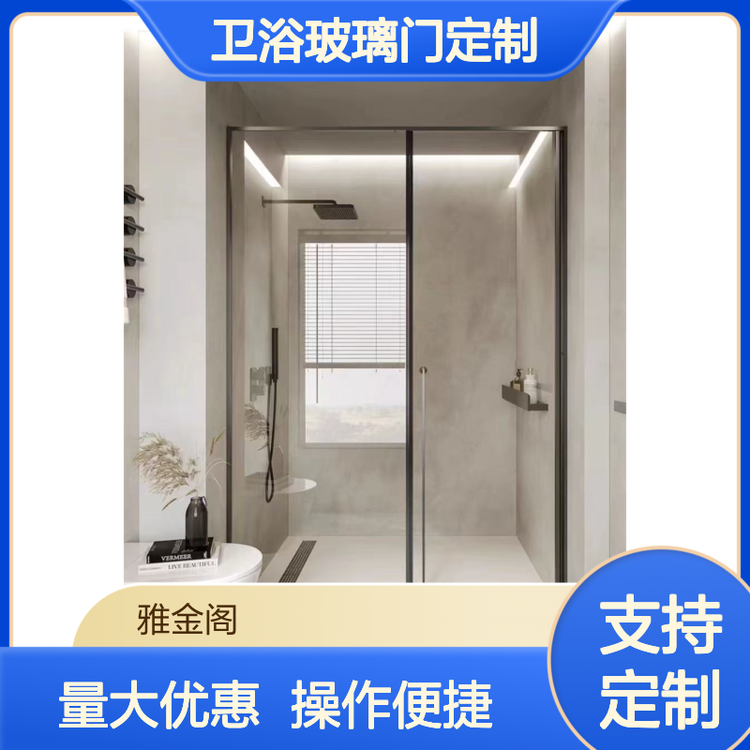 雅金阁卫浴玻璃门定制 淋浴房屏风一固一活推拉门 6-8mm全钢化玻璃