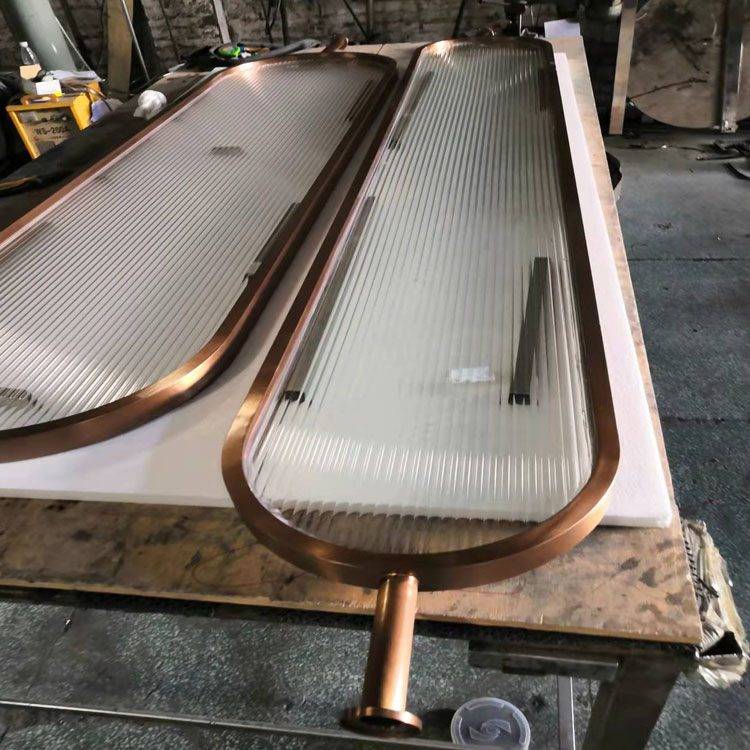 供应拉丝黄钛金不锈钢玄关 淋浴房古铜色玻璃隔断屏风