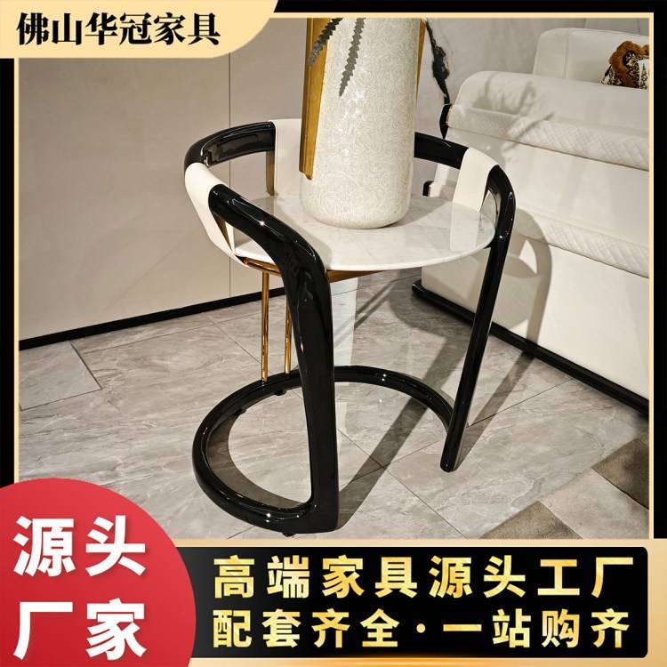 岩板圆茶几意大利轻奢客厅旋转圆几高低组合大理石极简家具直供