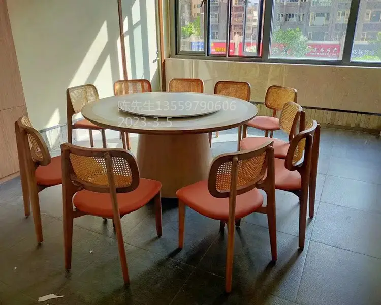 休闲饭馆餐桌橡胶木包大理石台面中式家具饭店餐桌椅可定制
