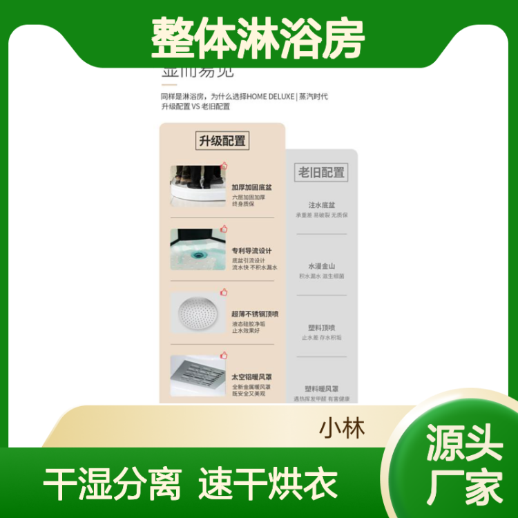 民安品牌定制整体卫浴 扇形淋浴房 带沥水架干湿分离