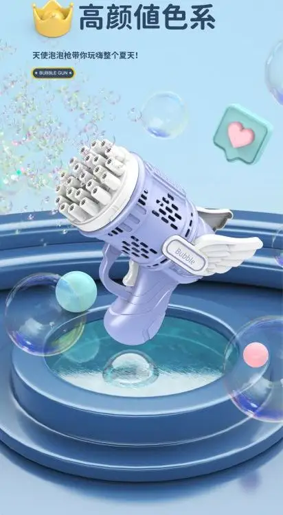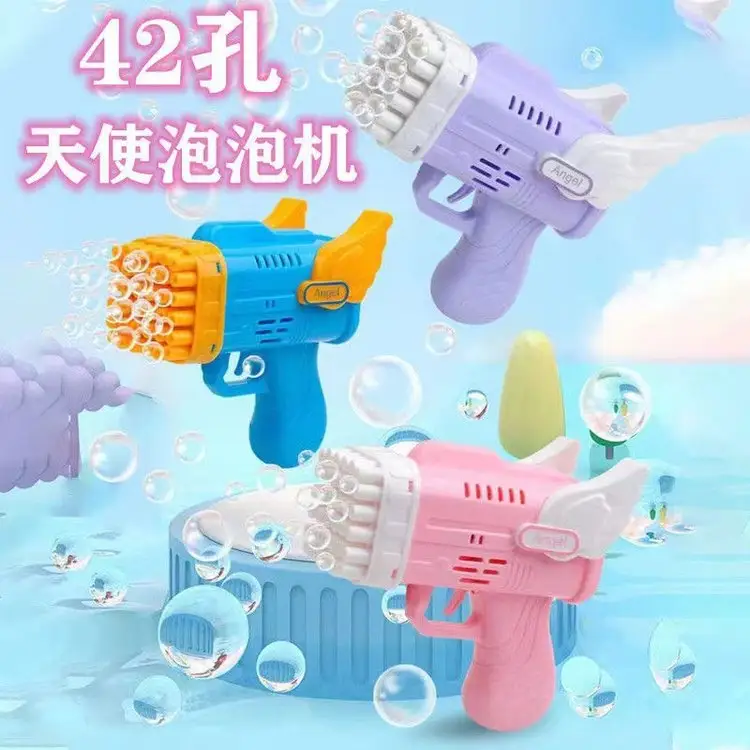 网红42孔天使泡泡机 儿童手持电动吹泡泡枪 户外吹泡泡玩具地摊批发