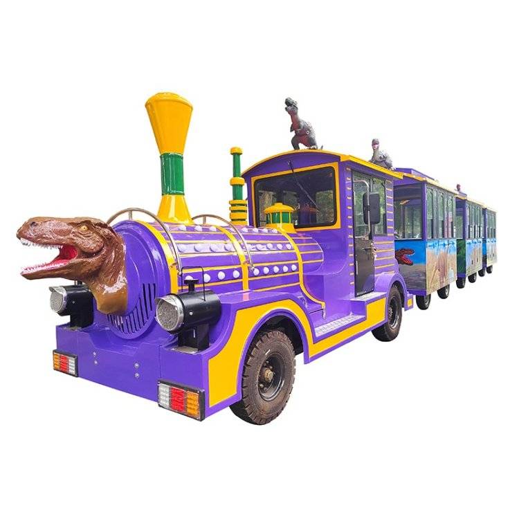主题公园定制恐龙观光火车游乐设备厂家电动无轨小火 车代步车