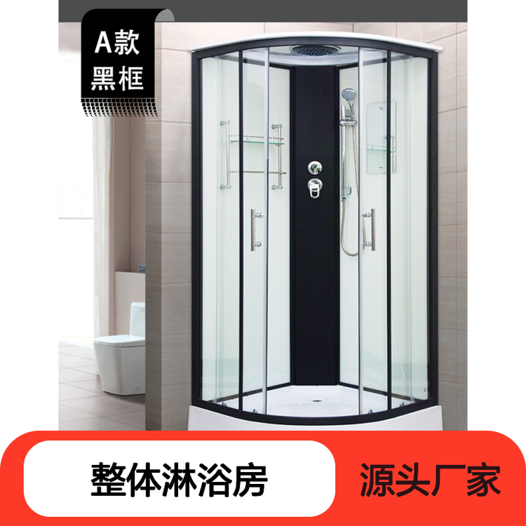 质优 简易弧扇型封闭一体式钢化玻璃门浴室 整体淋浴房