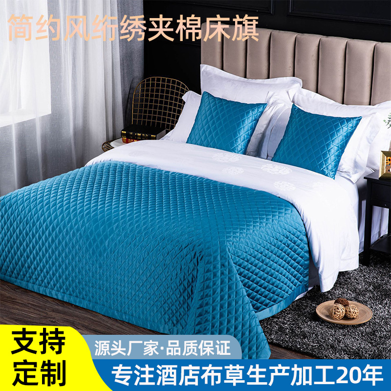 现货厂家酒店宾馆民宿简约纯色高精密绗绣夹棉床盖床尾毯抱枕靠垫