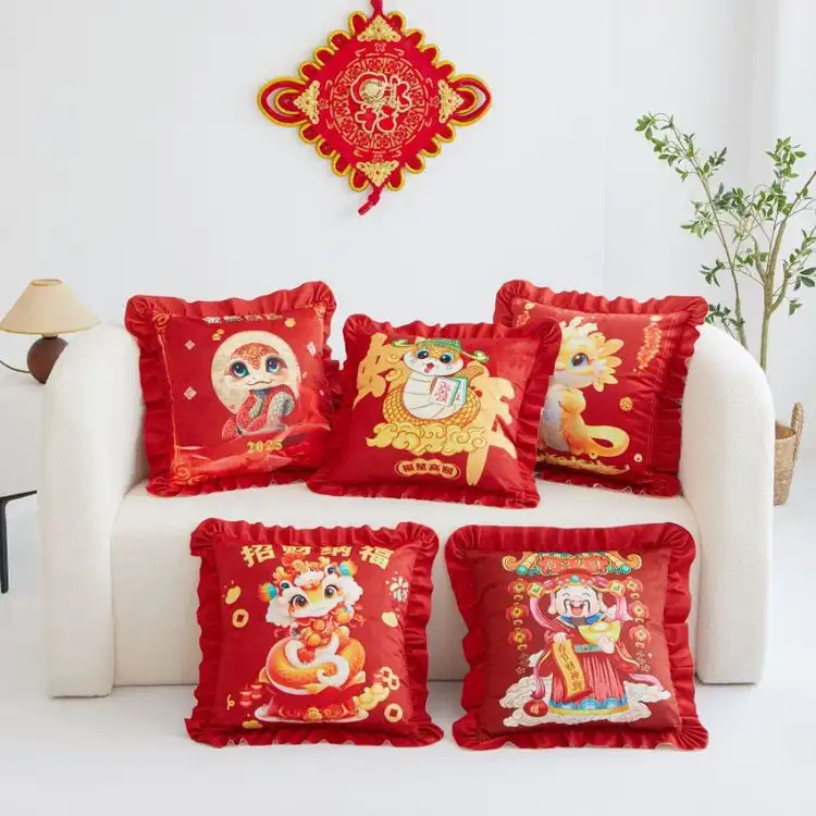 2025加厚天鹅绒圣诞节抱枕套双喜福字财神大红喜庆蛇年抱枕靠垫