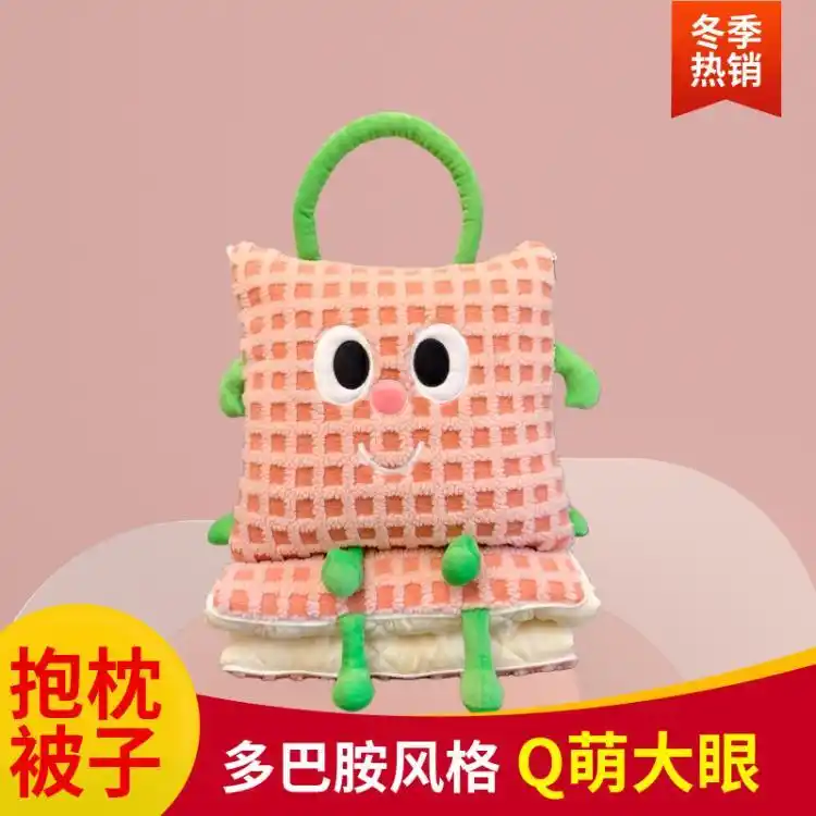 清爽舒适大眼萌多巴胺家居抱枕沙发午睡二合一空调毯手拎车载靠垫
