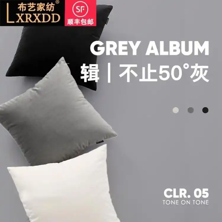 抱枕正方形北欧沙发客厅简约现代黑白灰色绒靠垫办公室腰靠夏