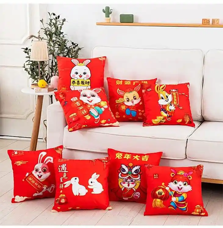 兔年礼品抱枕靠垫企业保险公司logo制作新中式抱枕套批发