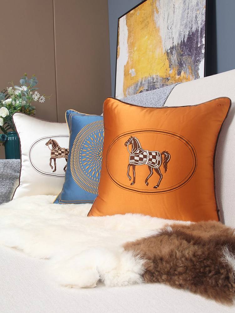 轻奢抱枕沙发靠垫白色毛绒马橙色枕套被简美靠垫靠枕会所45白
