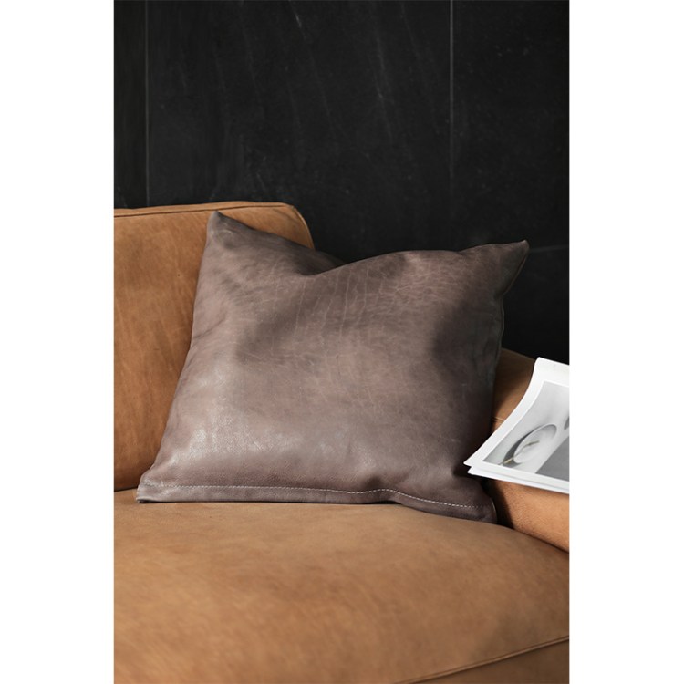 北欧表情NORHOR/进口头层牛皮/摩根迪真皮方形羽绒抱枕靠垫4色K