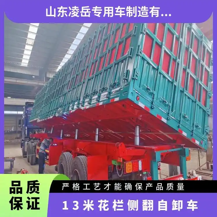 13米仓栏自卸半挂车 仓栅式侧翻自卸车 使用方便