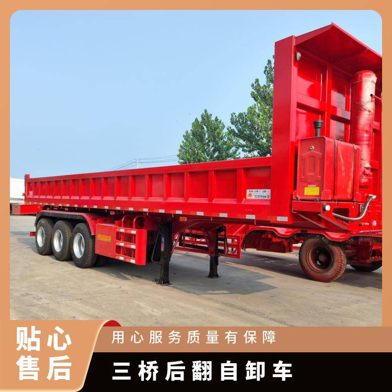 三桥后翻自卸车定制 9米标箱运输车 仓栅式高栏半挂车