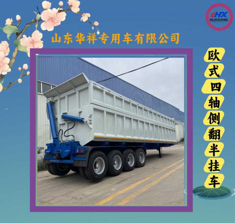 欧式4轴侧翻半挂车 栏板运输车 标厢 仓栅式自卸车 华祥专用车
