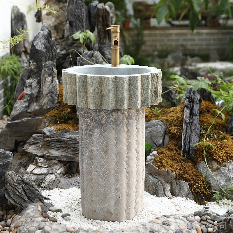天然石头洗手盆户外简约立柱盆阳台庭院一体花岗岩洗脸盆