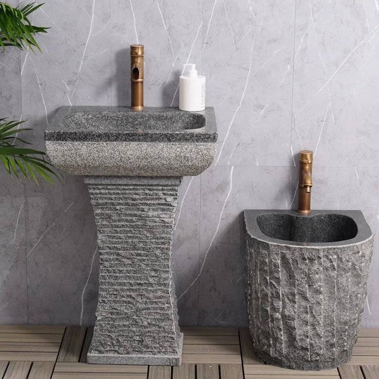 天然石头洗手盆户外简约立柱盆阳台庭院一体花岗岩洗脸盆