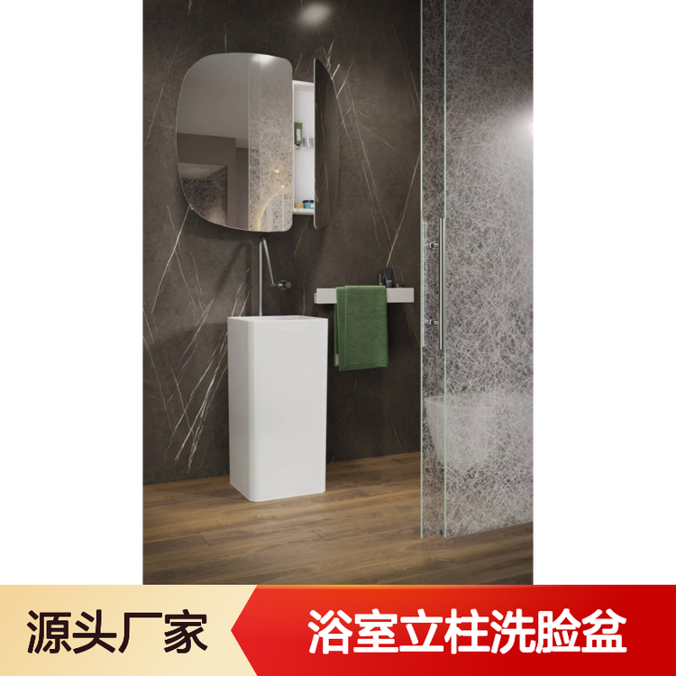 酒店风阳台室外室内岩板立柱盆连体盆洗手盆洗面盆智能镜除雾功能