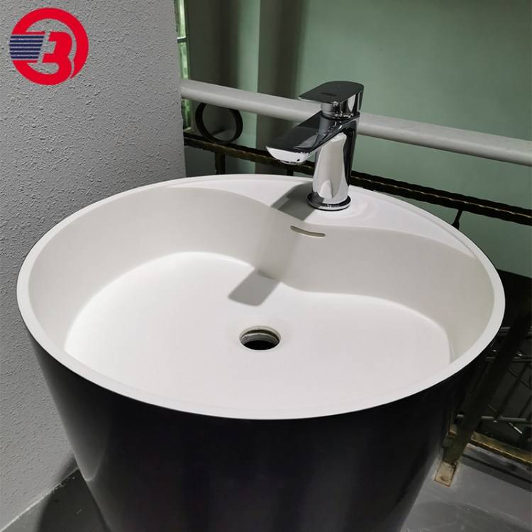 客栈酒店阳台卫生间落地立柱盆 人造石亚克力一体洗手盆