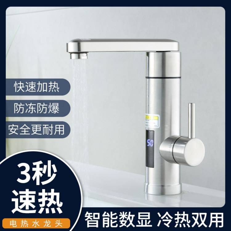 安迅快热不锈钢即热式电加热水龙头数显冷热面盆洗手洗菜盆家用