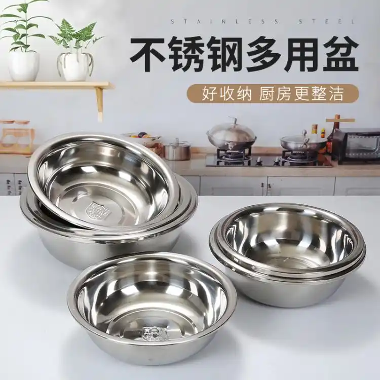 不锈钢盆批发加厚304汤盆商用食堂多用盆家用面盆可印logo