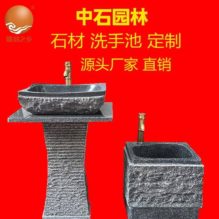 石材一体式台盆 卫生间洗手盆定制 石头洗手台定做 中石雕刻之乡