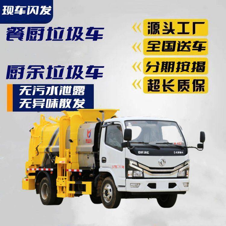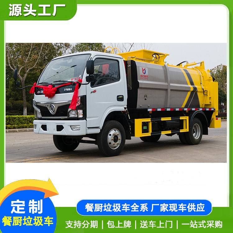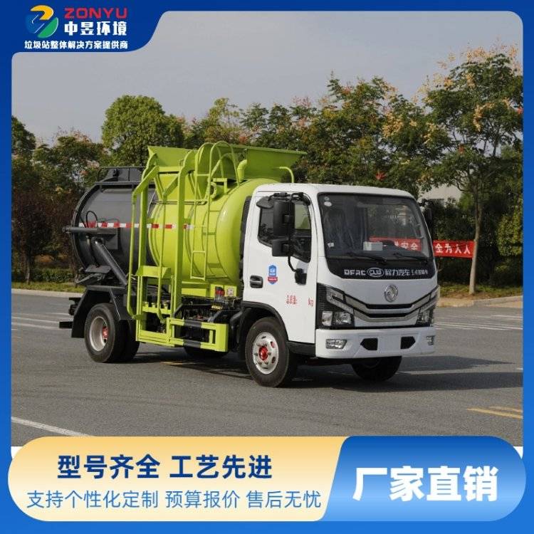 东风多利卡5方餐厨垃圾车国6免征升降挂桶自卸全密封泔水集清运车