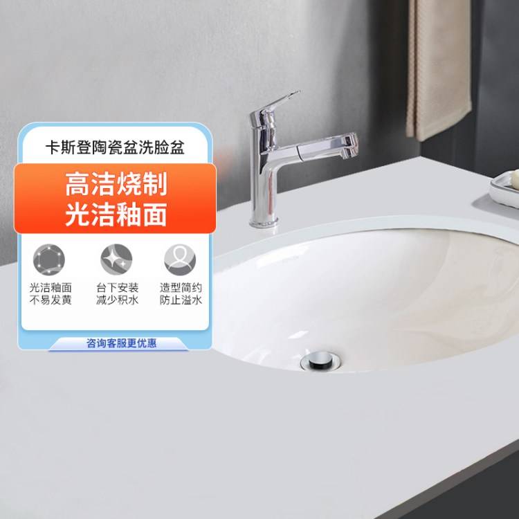科勒陶瓷台下盆洗手盆家用阳台洗脸盆嵌入式卫生间洗漱洗面盆2211