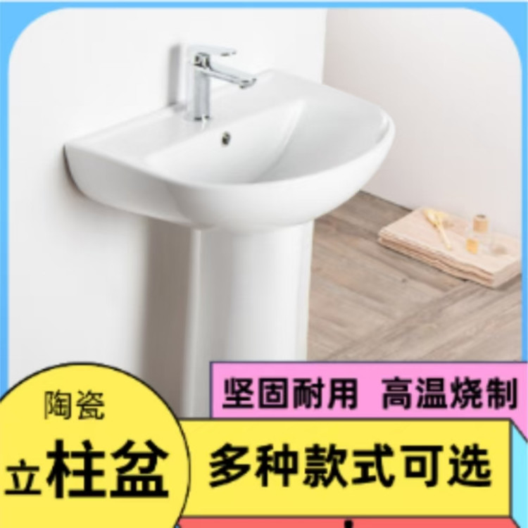 立柱式洗手洗脸盆卫生间一体陶瓷面盆台盆落地式柱盆