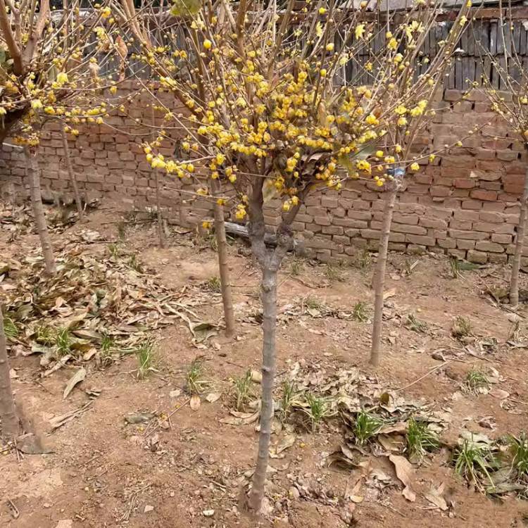 独杆腊梅出售 地径5-6公分 冬季开花 花香金黄色庭院绿化规格齐全