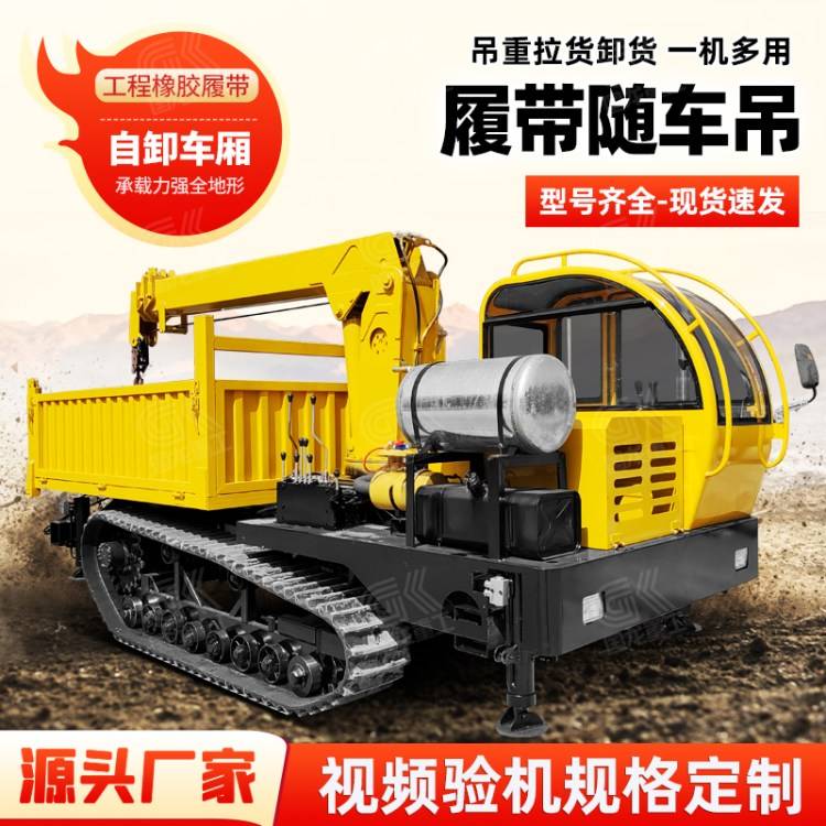 履带随车吊液压自卸吊重3吨载重8吨装载运输车全地形爬坡运输车
