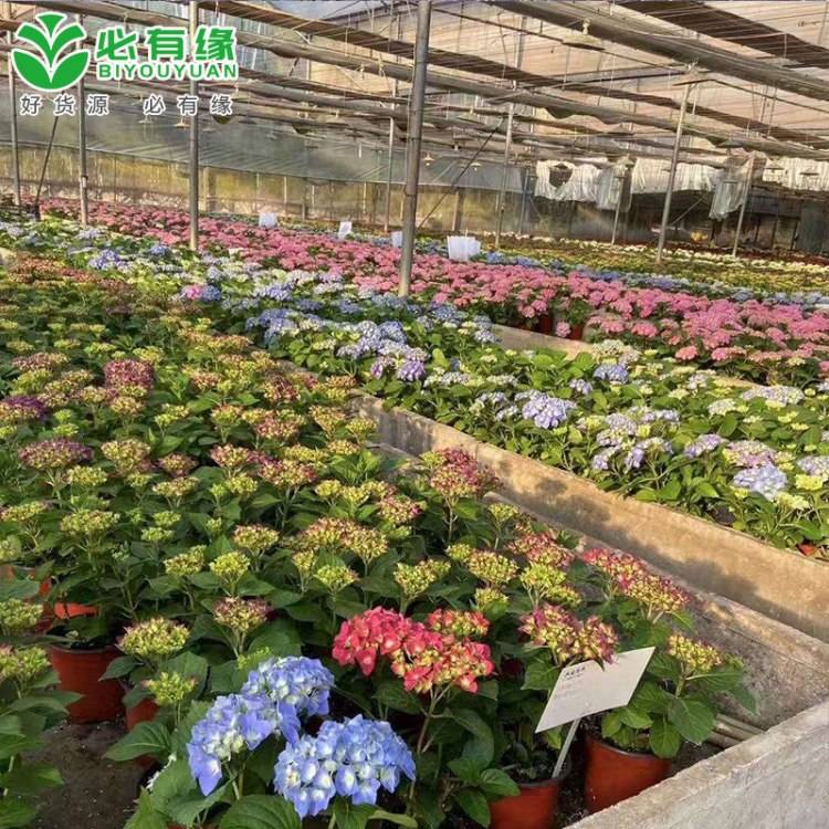 清情种植基地供应八仙花盆栽 颜色鲜艳花瓣丰满绣球花