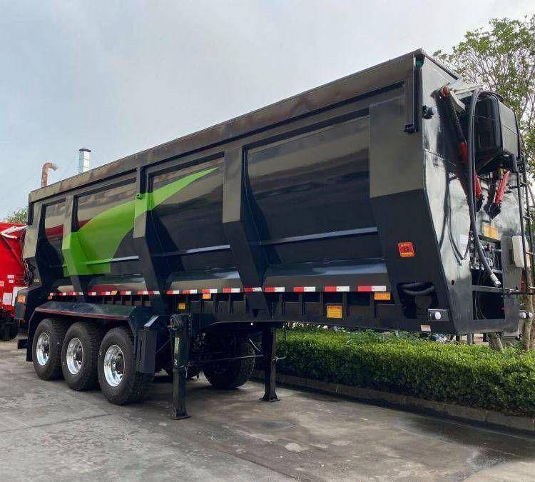 出口9米5后翻半挂车 电动篷布60厢板翻斗车 环保半挂自卸车斗