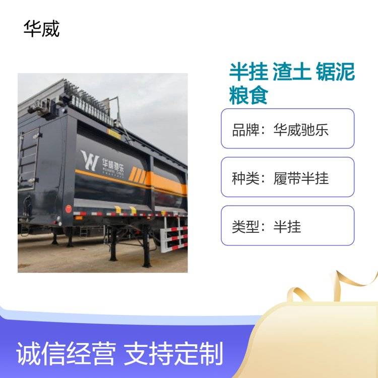 华威驰乐白色履带半挂自卸车/粮食/散装垃圾/渣土
