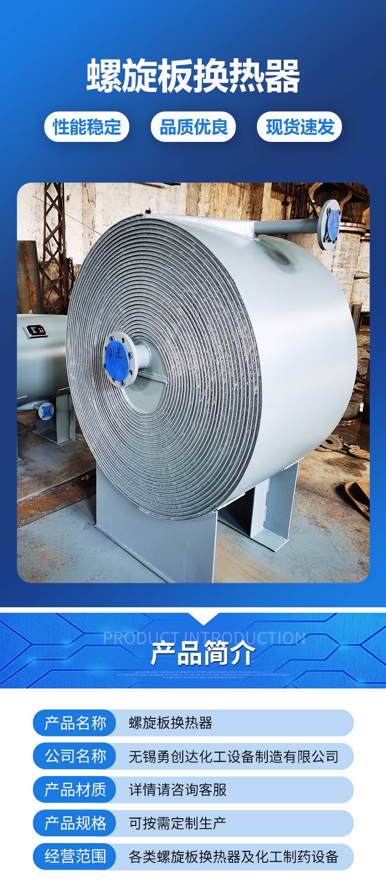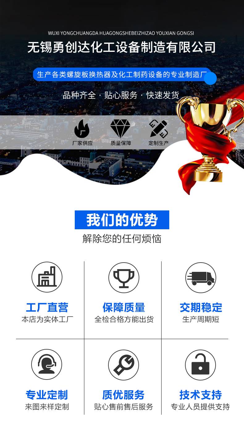 勇创达化工 螺旋板热交换器 螺旋板式冷凝器 换热器 结构紧凑