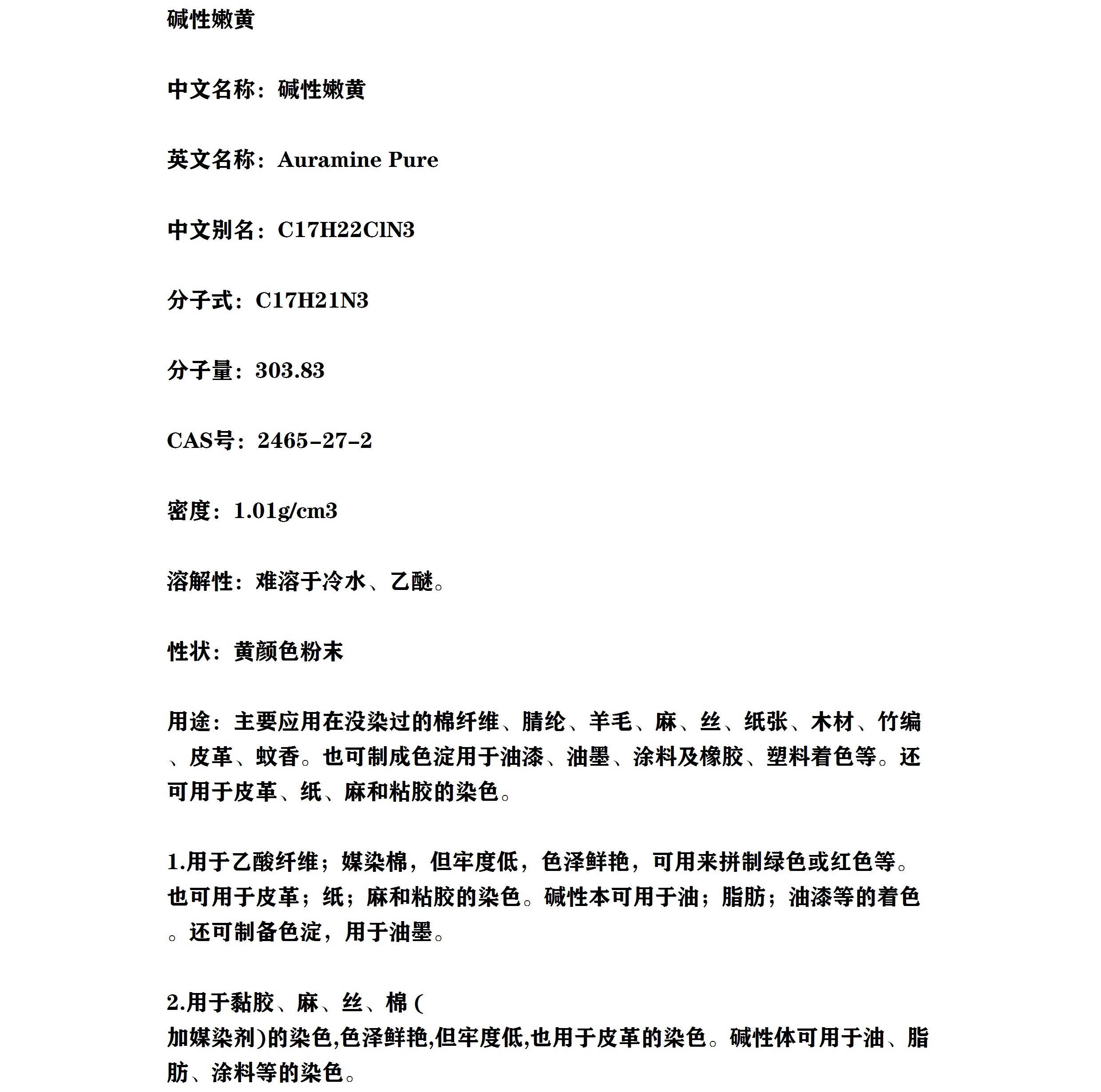 2222碱性嫩黄 工业黄色染料 用于腈纶羊毛皮革油墨等