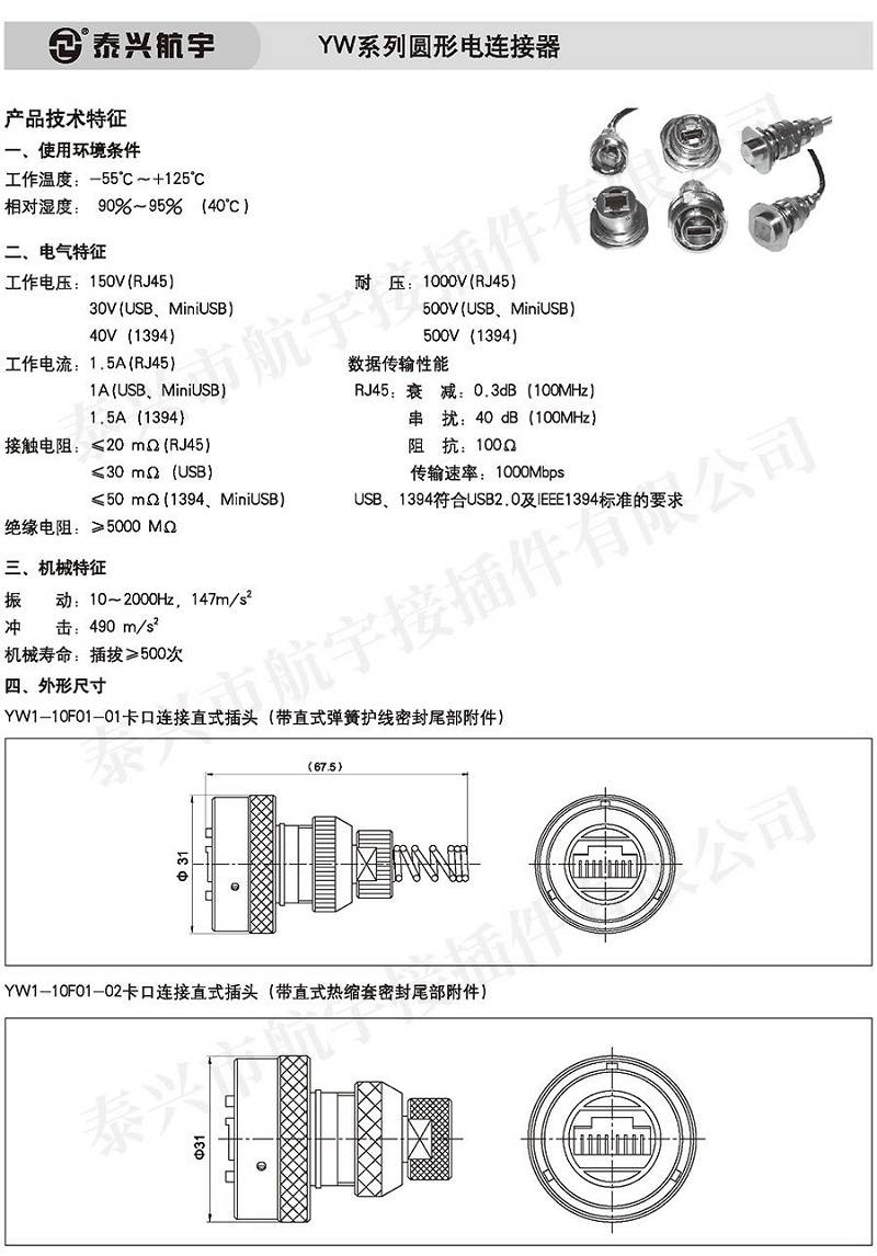 YW1—10FO1—01卡口连接直式插头(带直式弹簧护线密封尾部附件)