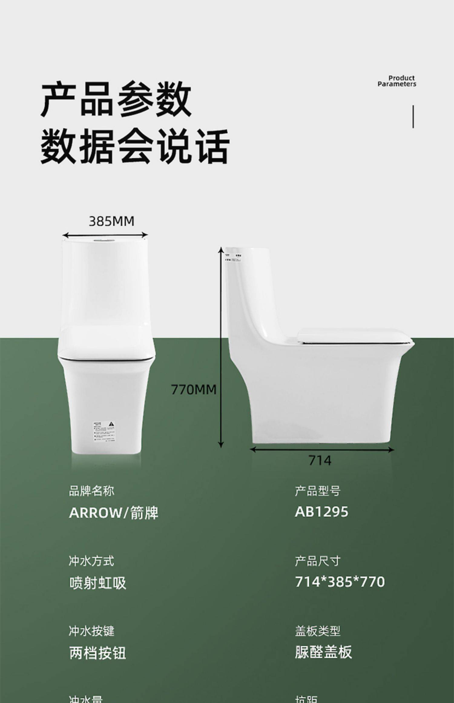 箭牌卫浴连体马桶脲醛盖板虹吸式座便节水防臭除臭去异味坐便器