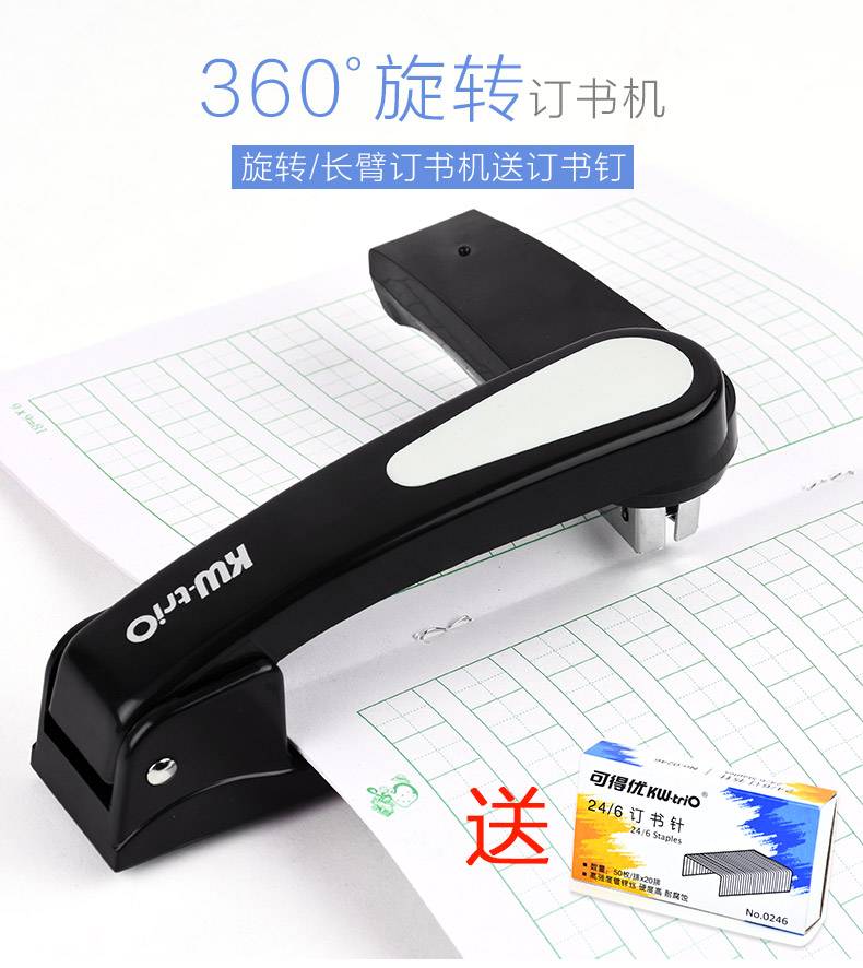 可得优可旋转订书机12号中小型长臂骑马钉办公学生用品中缝装订机器定书机加厚省力型多功能办公装订用品包邮