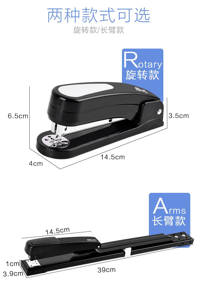 可得优可旋转订书机12号中小型长臂骑马钉办公学生用品中缝装订机