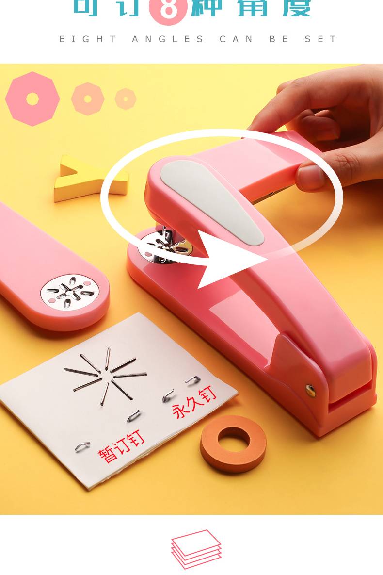 订书机学生用办公用品可旋转多功能骑马钉装订手动钉书中缝360度定书器中号载书女可爱小大号重型加厚2