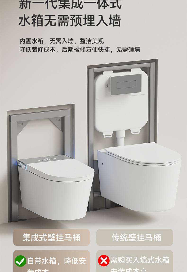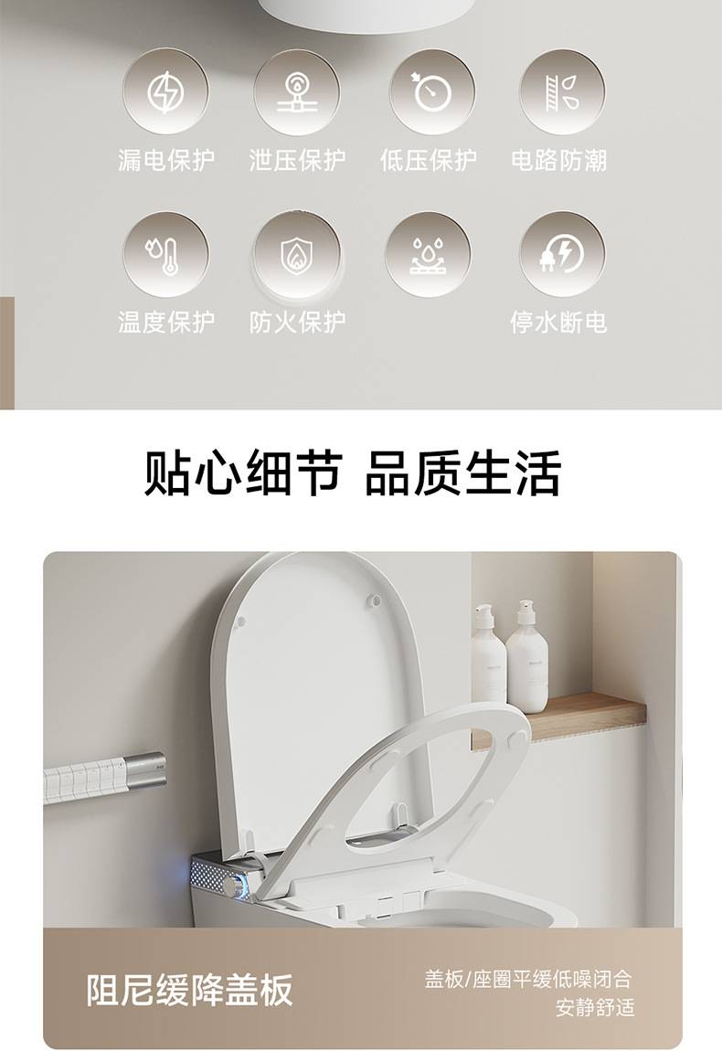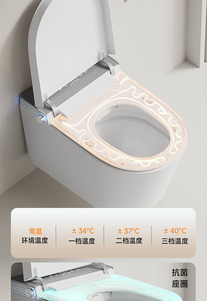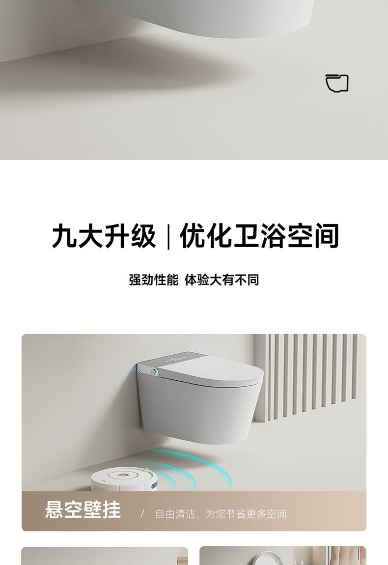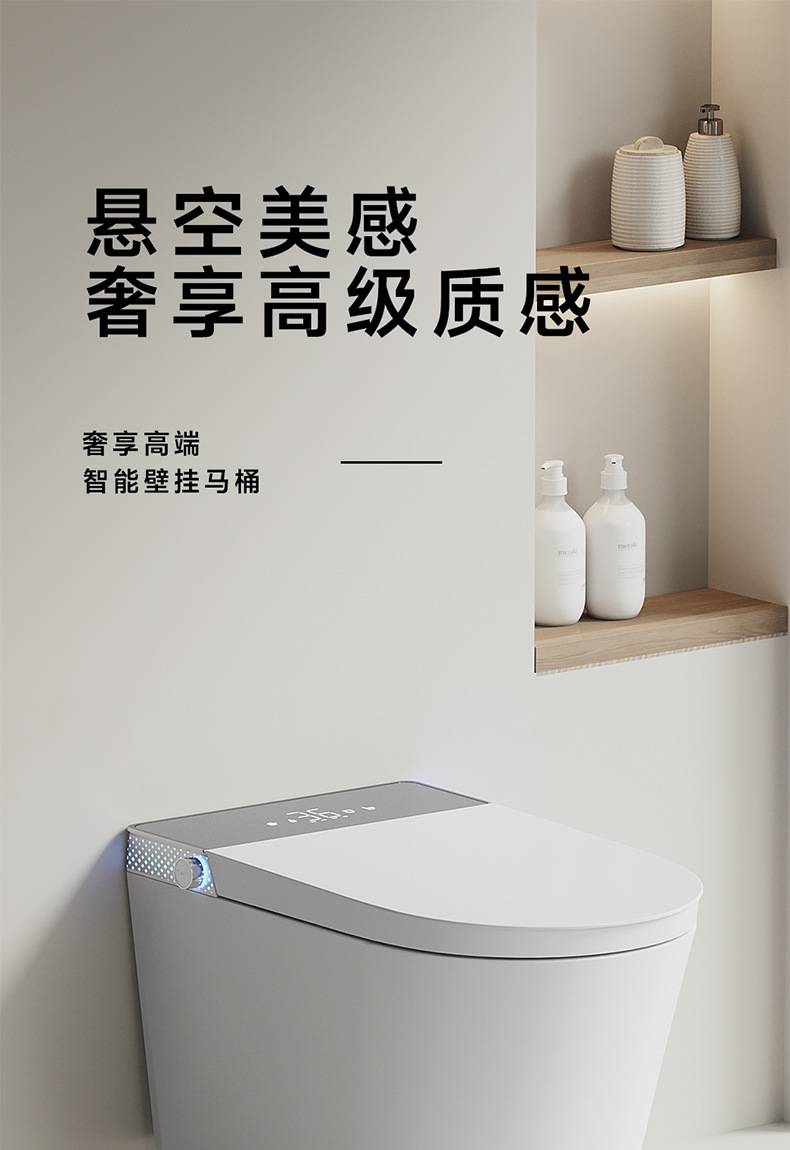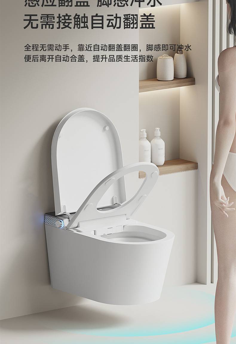 小户型59长壁挂式智能马桶即热式全自动翻盖泡沫盾家用悬挂坐便器